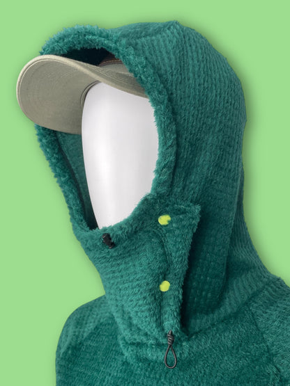 • Button the hood around your neck forming a warm and cozy buff or unsnap for full ventilation mode