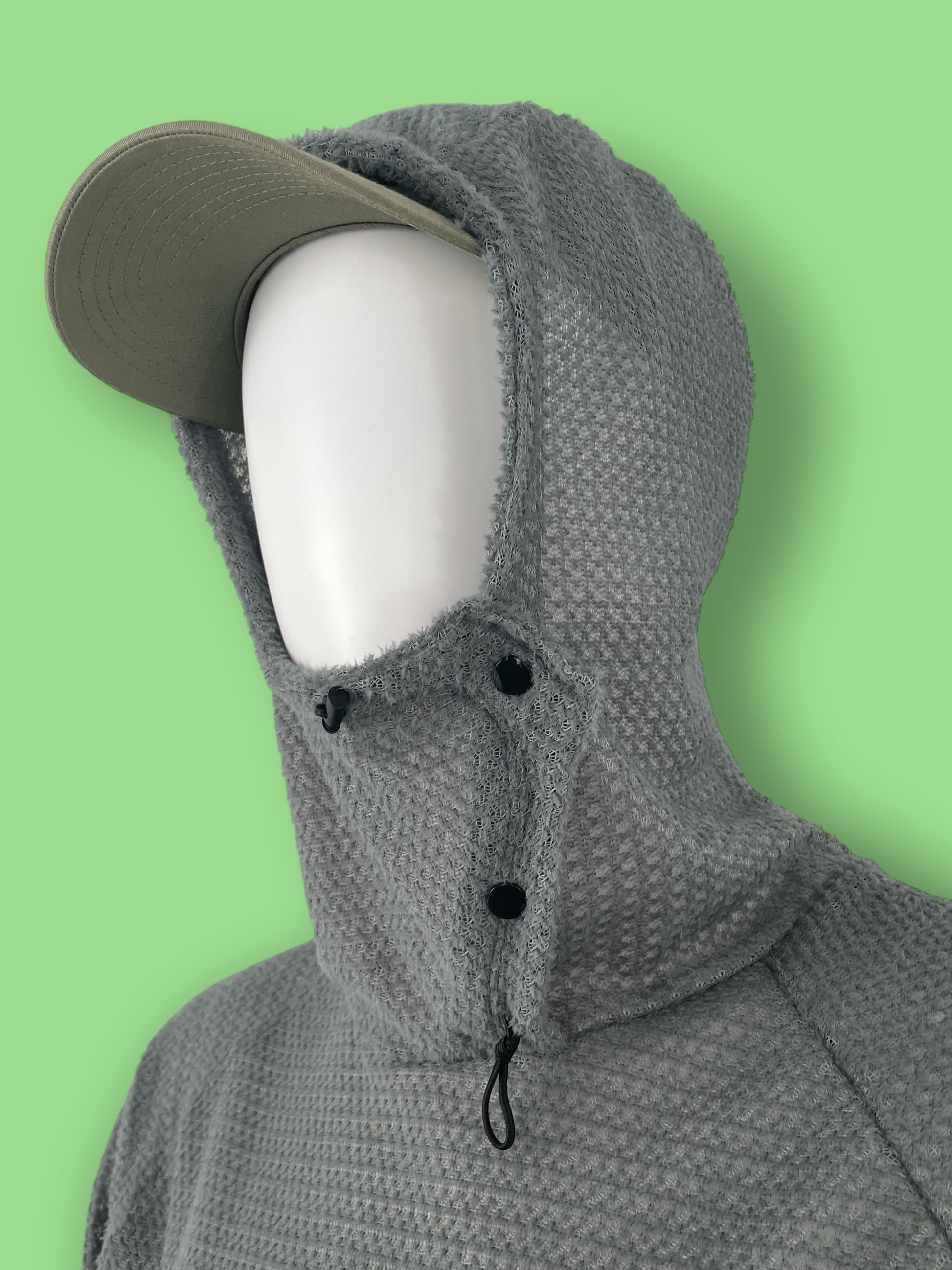• Button the hood around your neck forming a warm and cozy buff or unsnap for full ventilation mode