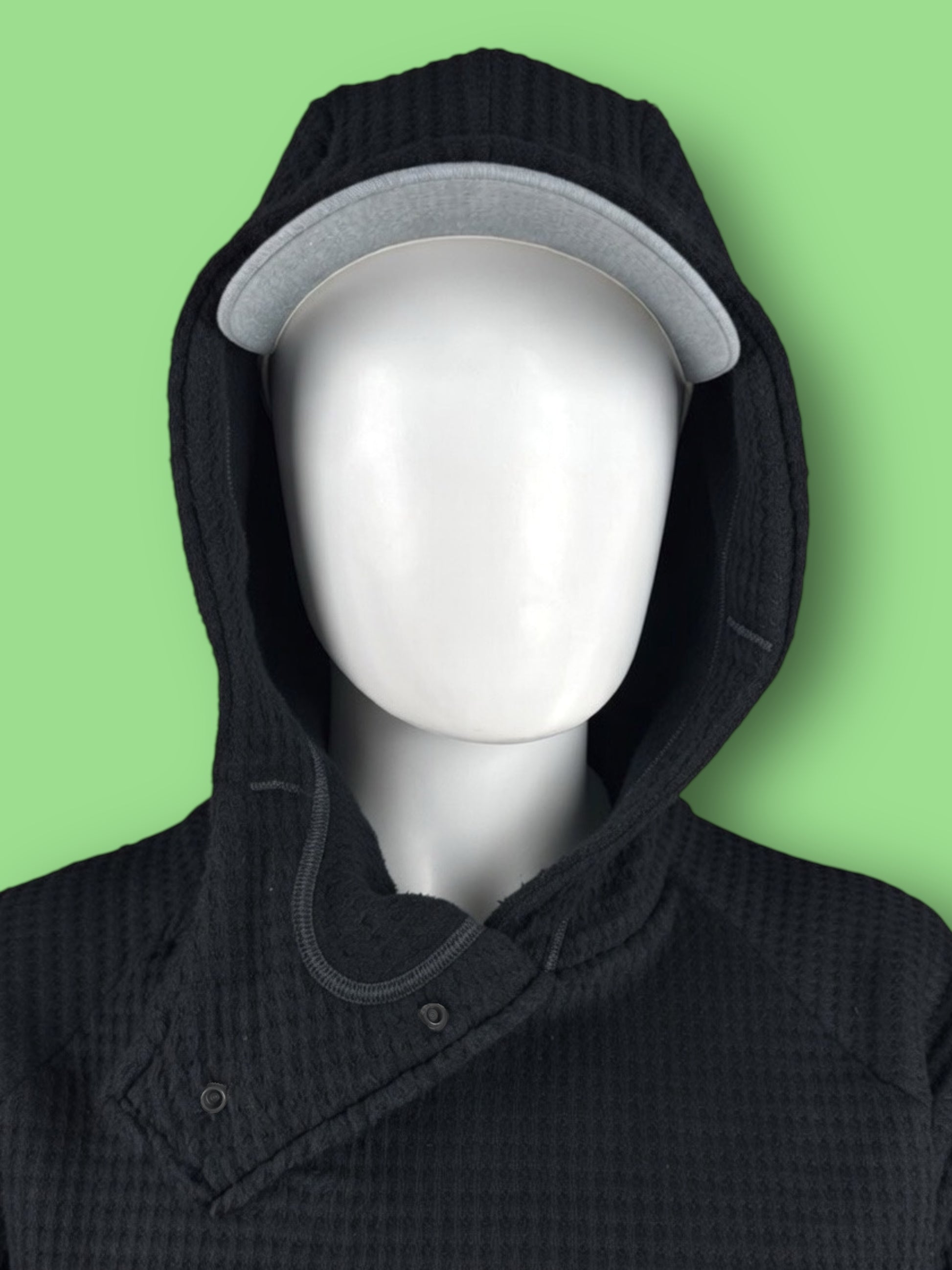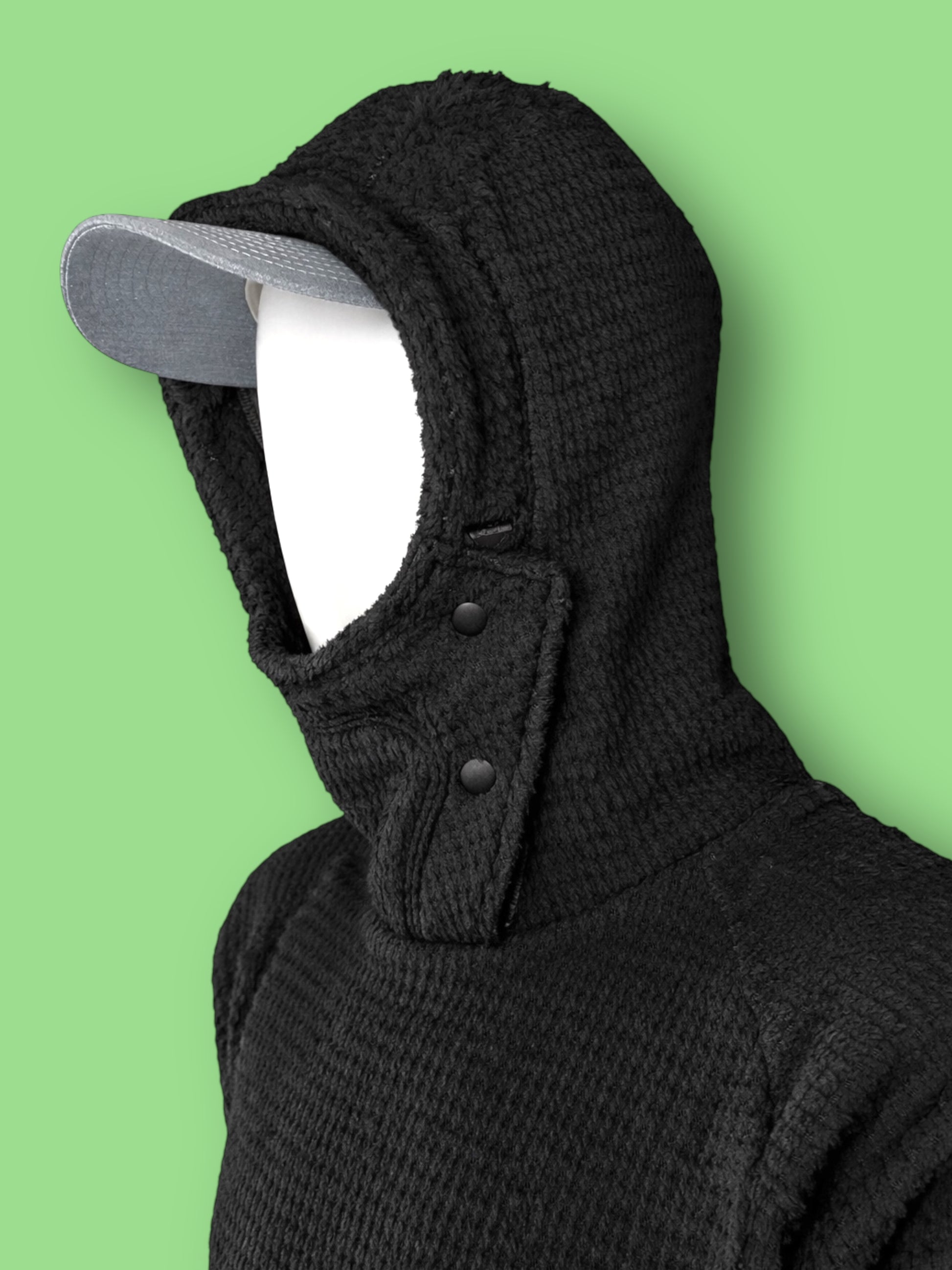 • Button the hood around your neck forming a warm and cozy buff or unsnap for full ventilation mode
